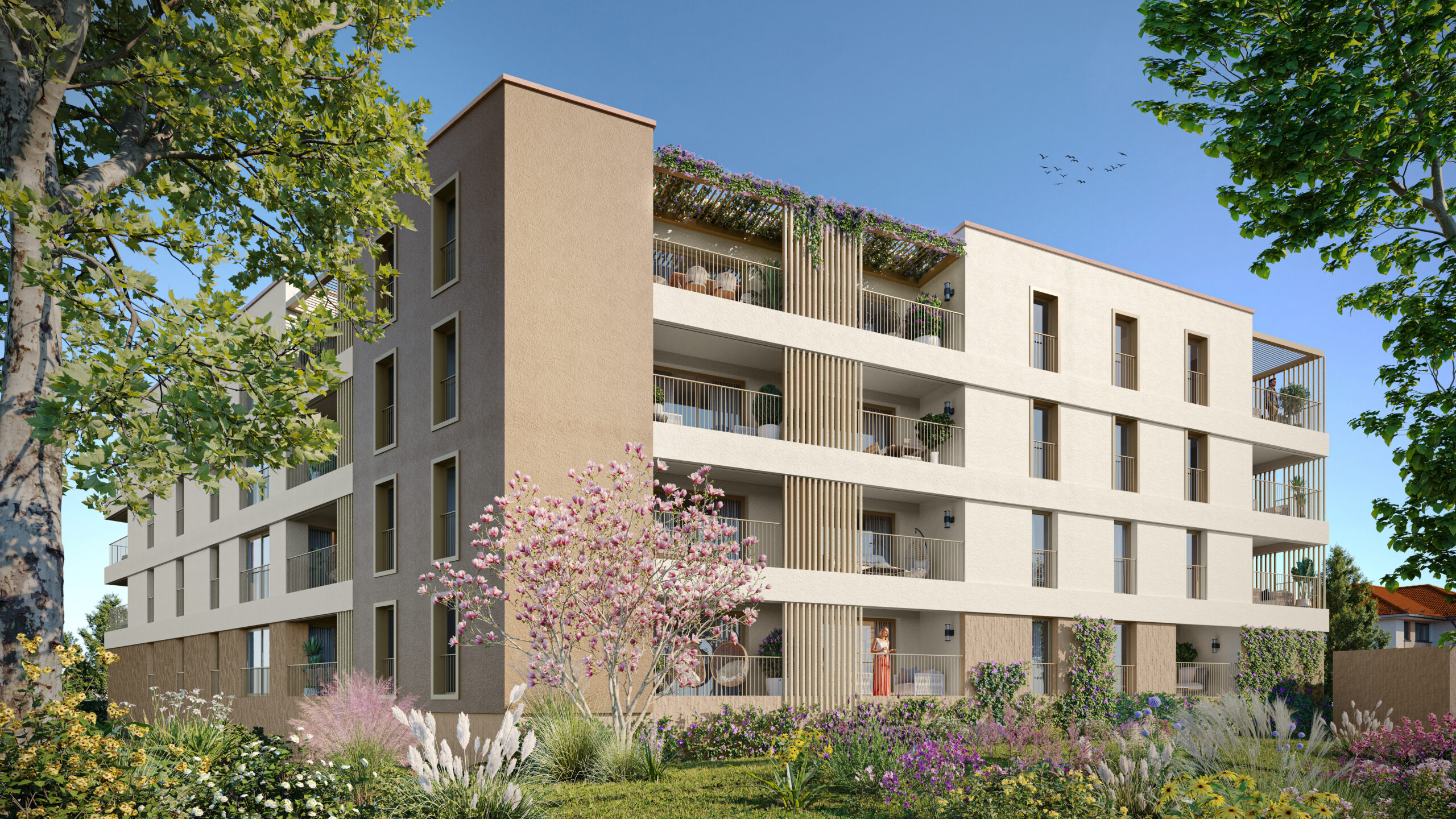Balcons et terrasses baignés de lumière, espaces extérieurs végétalisés