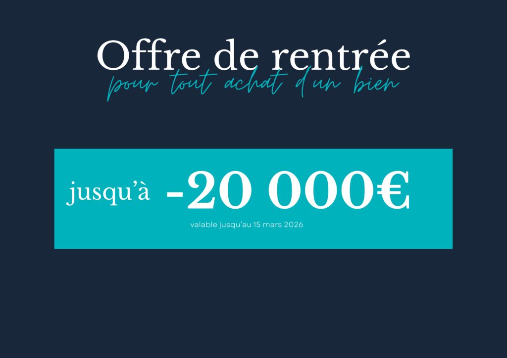 Une remise directe de 10 000€ pour un T2, 15 000€ pour un T3 et 20 000€ pour un T4 valable jusqu’au 15 mars 2026 pour les 2 prochains réservataires.
